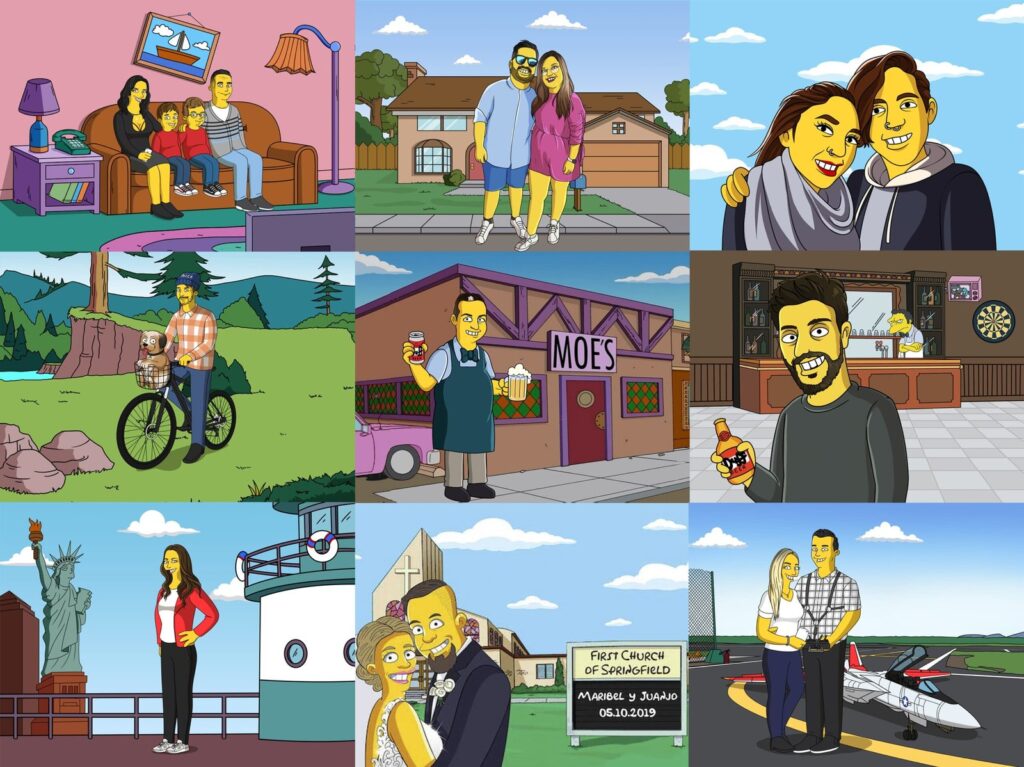 Personalized Simpsons Portrait. Hand illustrated by a professional illustrator – We have a team of professional designers who love to create fun and original Custom Simpsons artwork that you can give as a gift and keep as a memory forever. It’s simple! Just customize your order using the options above, upload your photo, drop us a note and leave the rest to us!